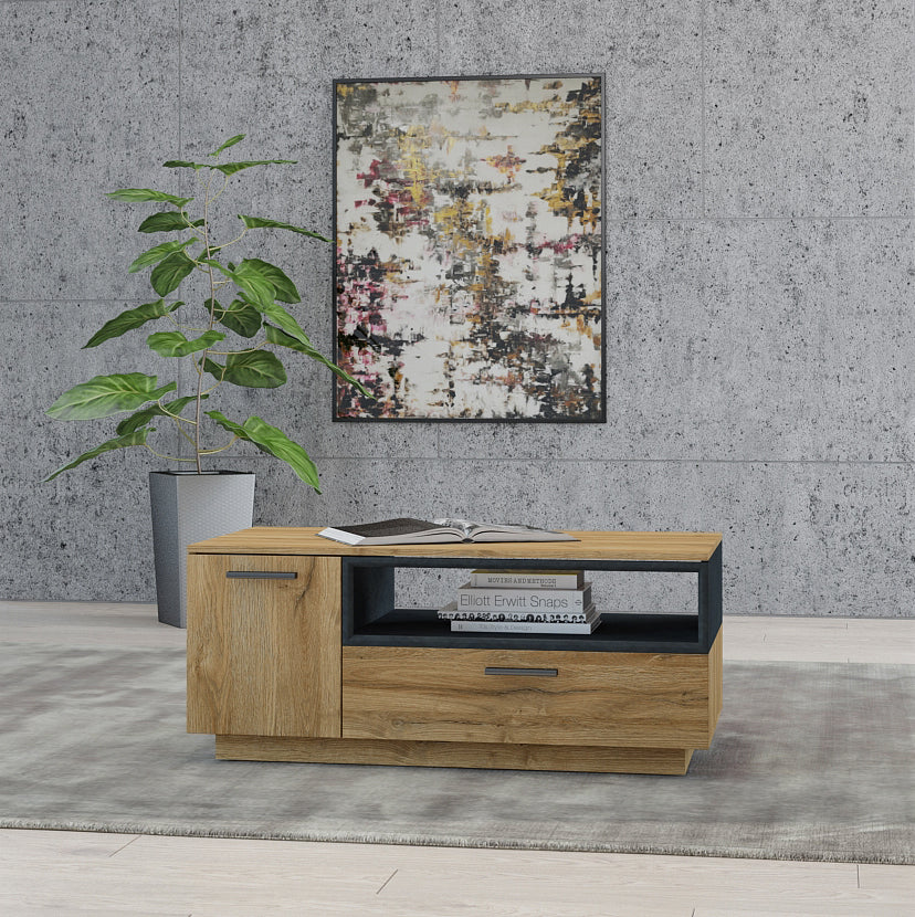 Salontafel uit de Sandal collectie is een stijlvolle salontafel uitgevoerd in eiken met grijze details. De salontafel is gedeeltelijk open voor bijvoorbeeld tijdschriften. Verder heeft het 1 deur en 1 lange klapdeur. Je kan hier eventueel genoeg spullen in kwijt. De tafel is perfect te combineren met andere meubels uit de Sandal collectie. Advies nodig? Neem contact met ons op voor meer informatie!